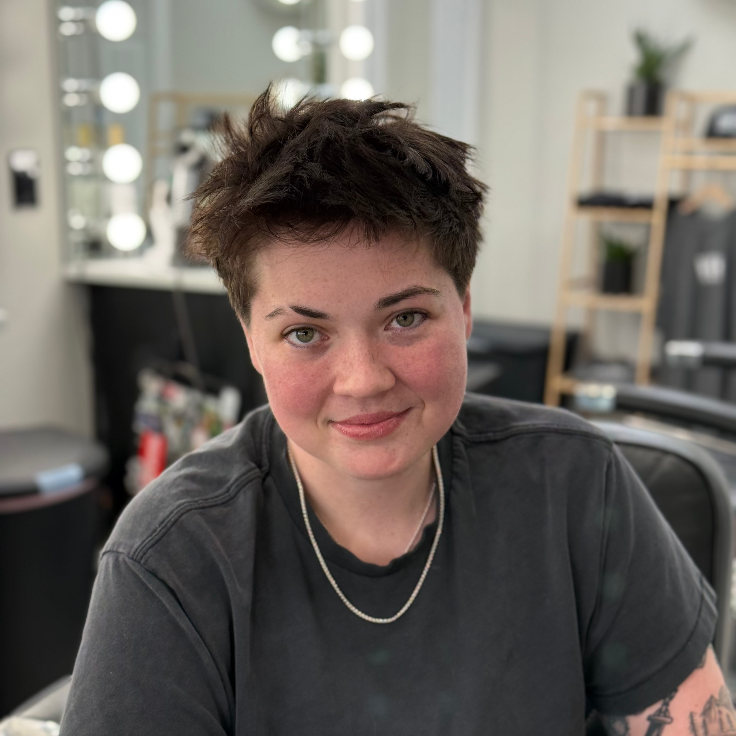 Alex brings a genuine passion for people and craft to every client who sits in her chair. With a love for music, fitness, yoga, and the outdoors, she carries a grounded, energetic presence that makes the experience feel as good as the cut looks. She's an animal lover, a tennis and pickleball player, and a gamer. She takes her work seriously because she takes people seriously, and that shows in the intention she puts into every appointment. When she's not behind the chair, you'll find her chasing good weather, good food (ask her about Mexican food), and a good match on the court. Alex is the kind of barber who remembers you and makes sure you leave looking and feeling like the best version of yourself.